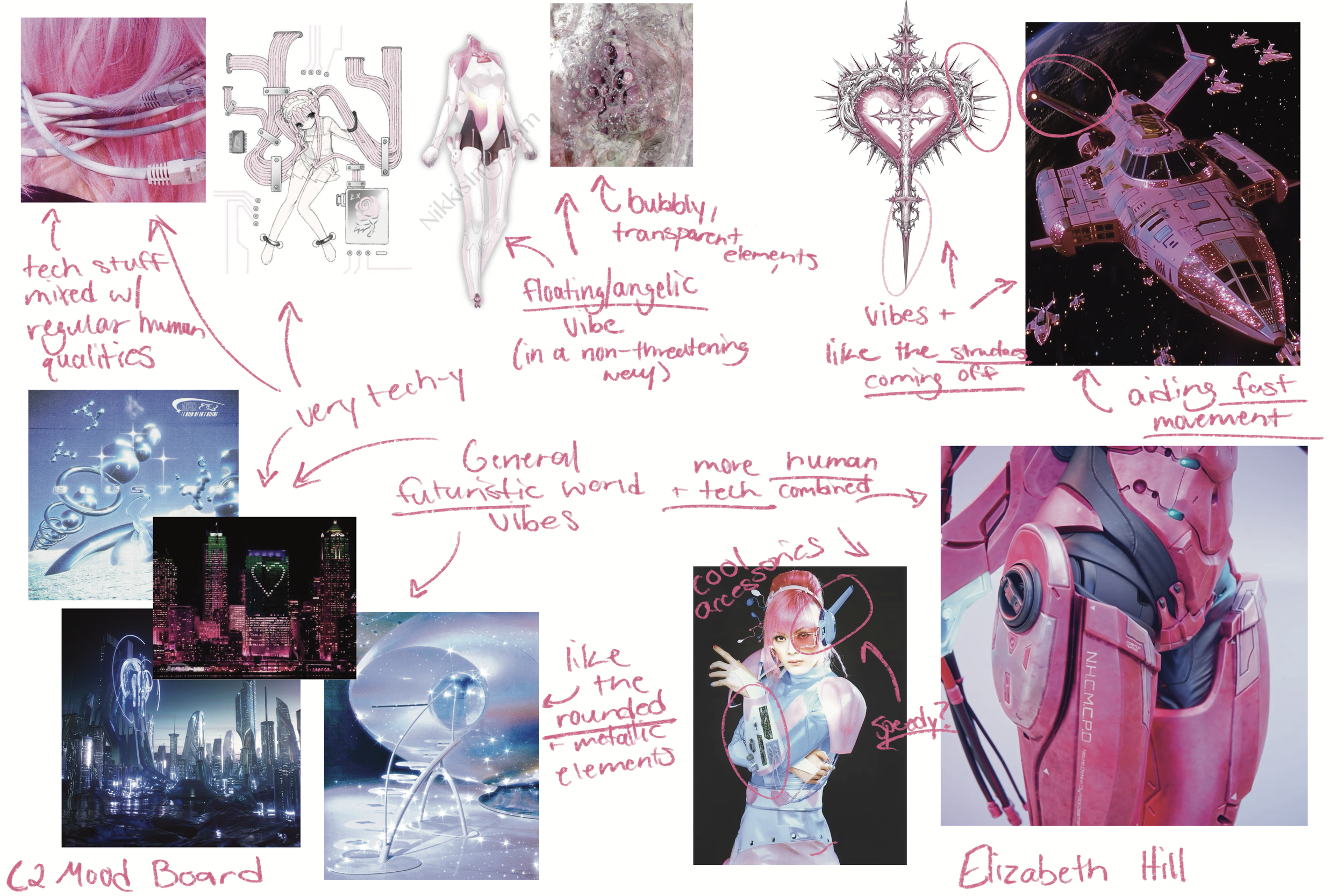 Bubbly Tech Silhouettes and mood board. Procreate, inspiration images sourced from Pinterest. January 2026.